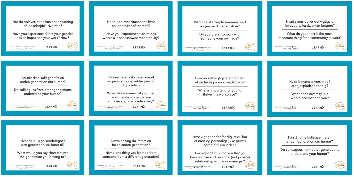 Kortene indeholder spørgsmål på både dansk og engelsk og kan bruges i alle sammenhænge – fra teammøder og workshops til familie- og venneaftener. Vi anbefaler, at du læser kortene igennem og udvælger dem, der passer bedst til din kontekst, inden I går i gang.